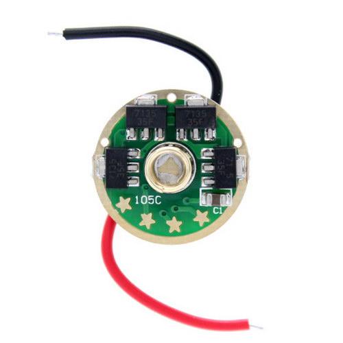 Отличный недорогой линейный токовый стабилизатор с двумя группами режимов. Стабилизация выполняется при помощи надежных и популярных токовых стабилизаторов AMC7135. Микроконтроллер - Atmel. В этом драйвере есть возможность "избавиться" от таких режимов, как стробоскоп и SOS. Для смены групп, нет необходимости что-то паять. Достаточно перевестифонарь в минимальный режим, подождать 3-5 сек. когда фонарь моргнет изатем в течении 1 секунды нажать на кнопку включения. Группа режимовизменена.