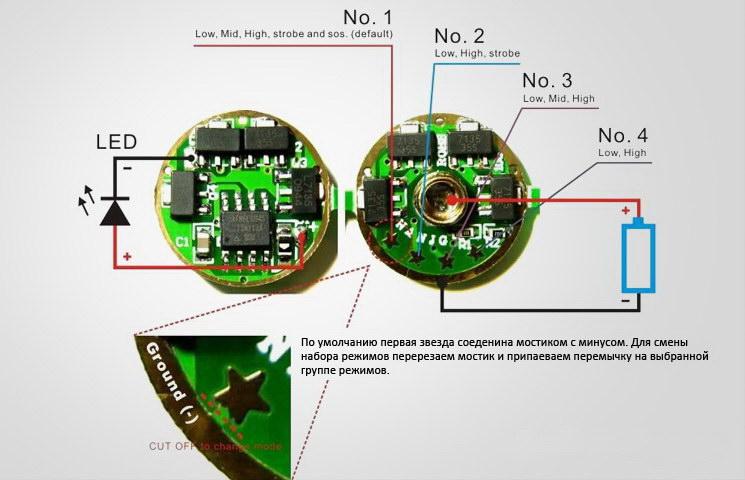 * Можно изменить количество режимов, разомкнув мостик к первой звездочке и активировать другой см.рисунок