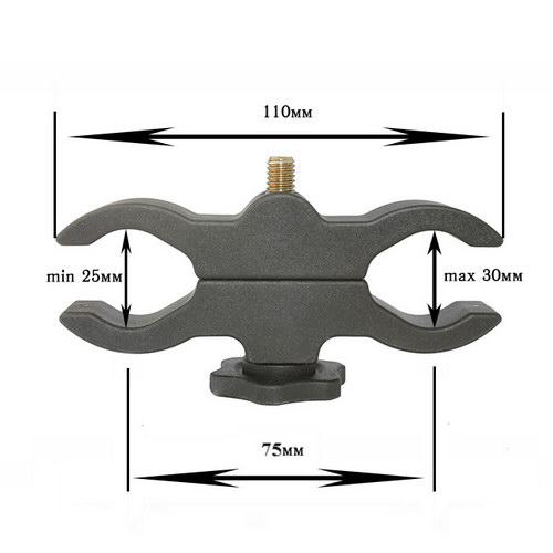 Крепление состоит из двух частей, которые соединяются мощным винтом. Крепление сделано из высокопрочного противоударного пластика, толщиной 20 мм. Установочный диаметр: 24-40 мм. Инструмент для установки кронштейна не требуется.