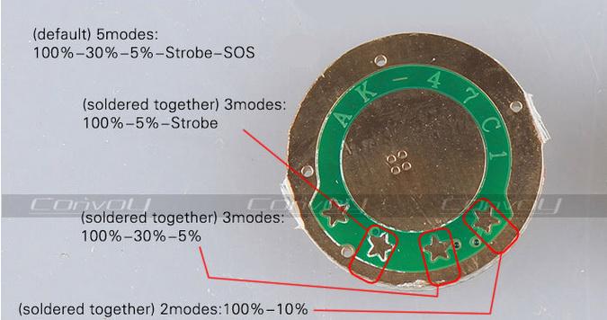 Выбор режимов - кратковременным прерыванием питания (например, полунажатием кнопки фонаря)