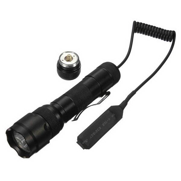 Сменная задняя часть корпуса фонаря с вынесенным на шнуре датчиком давления. С ее помощью фонарь UltraFire 502B превращается в мощный подствольный осветительный прибор моментального действия. Длина шнура -30 - 50 см. Свет активируется только в нажатом положении кнопки. Плохо сочетается с многорежимными фонарями без памяти.
